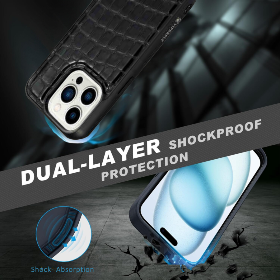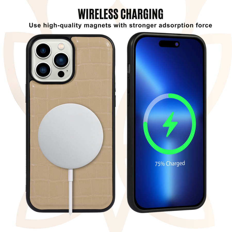 - ⛓️【Supports WIRELESS CHARGING compatible with MAGSAFE 】Seamlessly MagSafe compatible charging and accessories, it allows charging without phone removal with this magnetic closure internal phone case. Made from premium crocodile PU leather, it offers robust protection against scratches, bumps, and drops, keeping your phone secure and stylish.